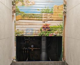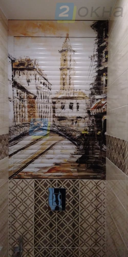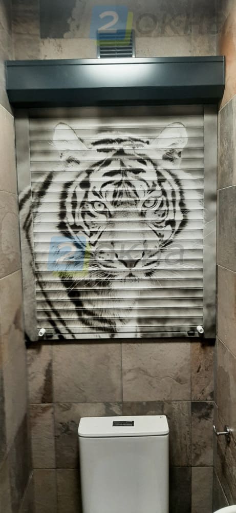 Не менее популярны рольставни с рисунком для гаражных и обычных ворот, а также для санузлов, ванных и других жилых помещений. В жилых интерьерах изображение чаще наносится на внутреннюю сторону, чтобы радовать глаз жильцов, а не прохожих. Нанесение рисунка на крупные наружные поверхности витрин или фасадов может быть дорогостоящим, поэтому для дома практичнее выбирать небольшие декоративные варианты.